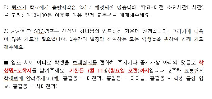 이선노 작성일초6 이주안 직접 입소합니다. 퇴소는 대전역으로 합니다.