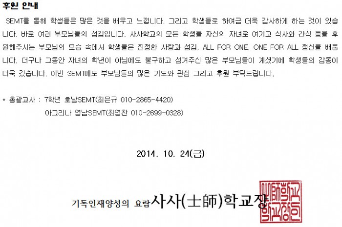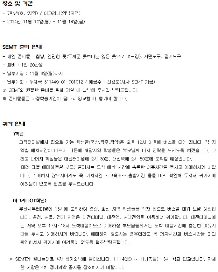 2014-2 7학년, 아그리나 국내 SEMT 공지 페이지 정보 작성자 사사학교 작성일14-10-24 11:54 조회10,209회 댓글0건 관련링크 이전글 다음글 목록 본문 . 댓글목록 등록된 댓글이 없습니다. 이전글 다음글 목록