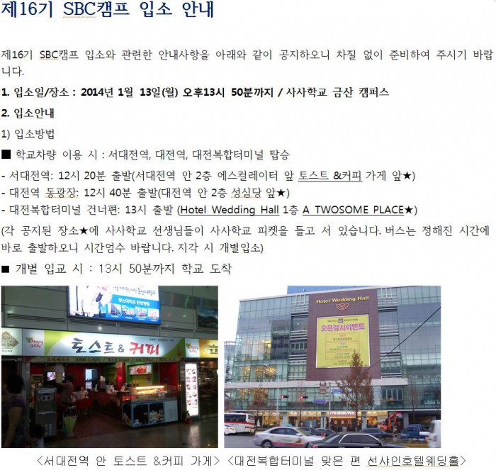 [제16기 SBC캠프 입소 안내]