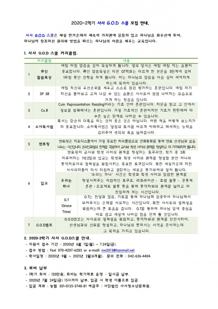 2020-2학기 사사 G.O.D 스쿨 모집 안내