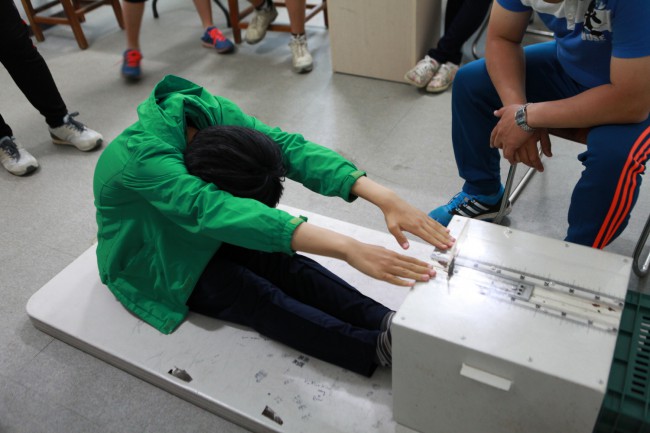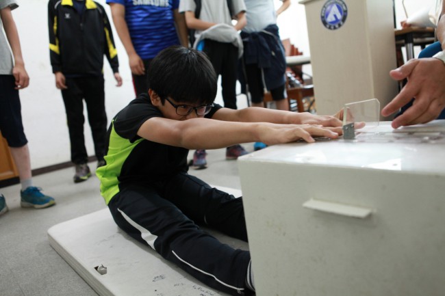 윗몸일으키기, 제자리 멀리뛰기, 유연성, 셔틀런, 체격검사의 코스로 이루어진 체력검사는 전교생을 대상으로 실시되었습니다. 당연히 모든 수업은 휴강 되었고 학년끼리 코스별로 이동하며 검사를 받았습니다.