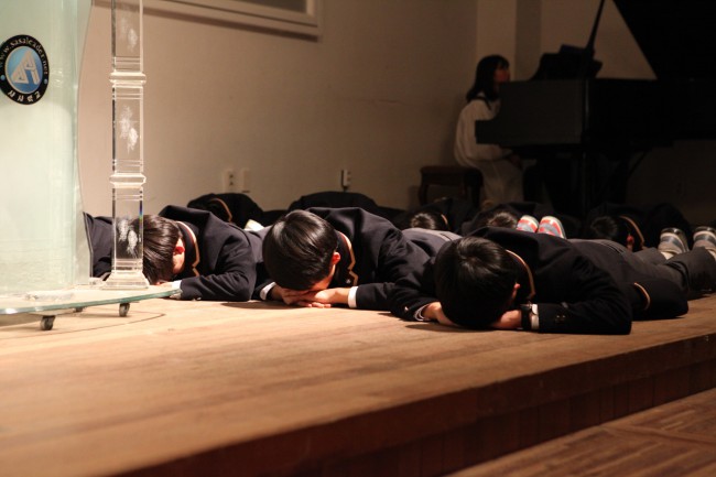 또한 성인식을 받을 때 엎드리는 자세로 있는 시간이 있는데 이 시간은 자신을 낮추며‘절대 복종 절대 겸손 절대 섬김’을 다시 다지게 되는 시간입니다.