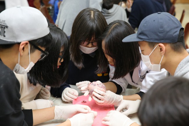 이번 과학의 날에는 장풍대작전, 손가락 화석 만들기, 산과 염기 실험, 점탄성, 돼지 심장 해부 등을