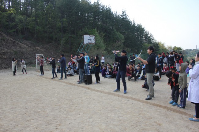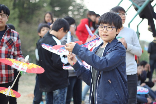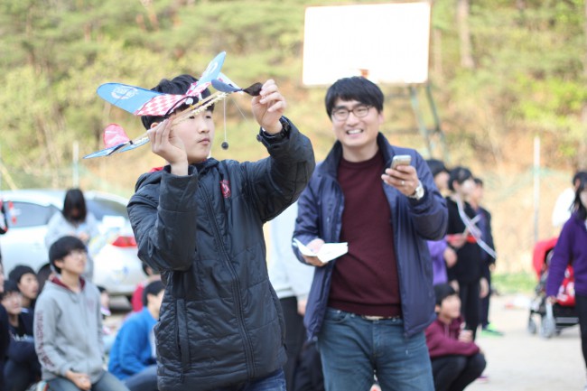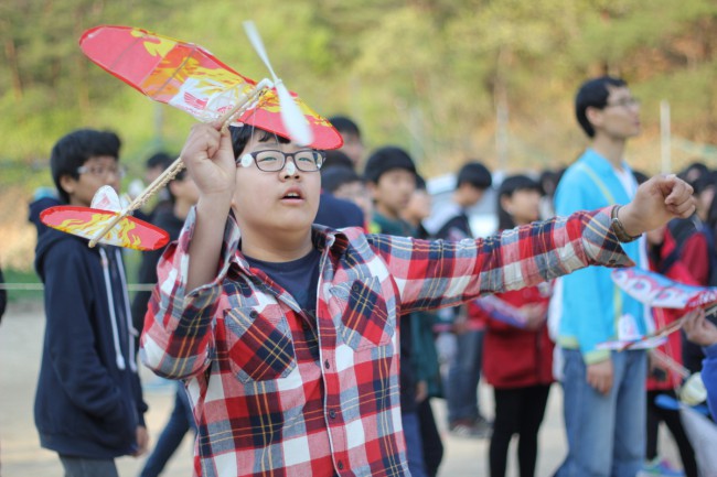 마지막 8교시에는 오전에 만들었던 고무동력기를 날리는 고무동력기 날리기 대회를 했습니다.
