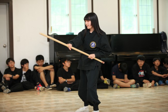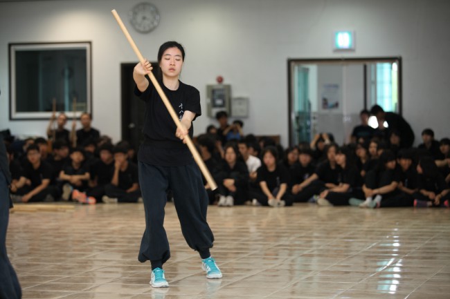앉아있는 방청객들도 하나가 되어 권법, 약속대련, 봉술 하나하나가 끝날 때 마다 힘찬 박수로 격려해주었습니다.