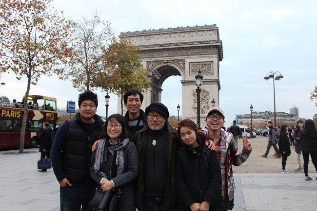 사르트르 성당이라고 착각했던 사르쾨르 성당이라는 파리 시민들이 직접 돈을 모아 지은 성당을 잠시 들려 우리 일행은 개선문으로 향했습니다. 프랑스의 혁명이 낳은 사생이라고도 평가받고, 세계에 프랑스의 자유주의를 확산시킨 인뮬이라고도 평가받는 나폴레옹이 아우스터리치 전투에서 승리한 후 이를 기념하기 위해 만든 것이라고 합니다. 위에서 개선문을 내려다보면, 12개의 도로가 마치 별과 같은 모양으로 모아지는데 이 모양이 별과 같아서 에투알(프랑스 어로 별이라는 뜻) 광장이라고 불립니다. 안타깝게도 위에 올라가보진 못했습니다. 이 개선문은 로마 티투스 황제의 개선문을 본뜻 것인데, 로마 시대부터 개선문 아래로 행진하도록 허락한 자는 영웅 뿐이라고 합니다. 대표적으로는 2차 세계 대전 때 활약했으며 고집이 세기로 유명한 드골 장군이 있겠지요. 그런 의미에서, 이런 유럽 셈트에서 우리의 건강과 모든 것을 챙기시고 이끌어주시는 우리의 선생님 영웅들의 사진을 담아 봤습니다.^^