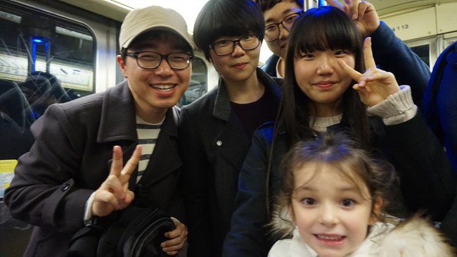 지하철에서 만난 귀여운 여자아이와 찰칵!