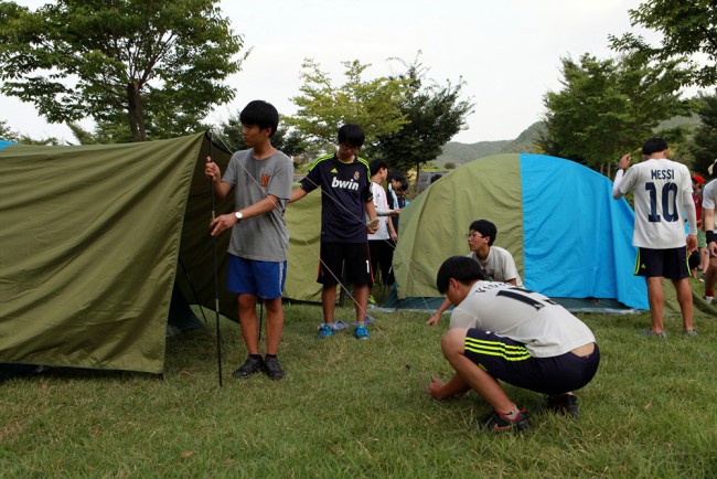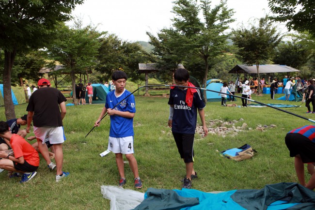 도착하자마자 조별로 조끼리 자게 될 텐트를 쳤는데 텐트를 치는 것도 재미있는 경험이었습니다,