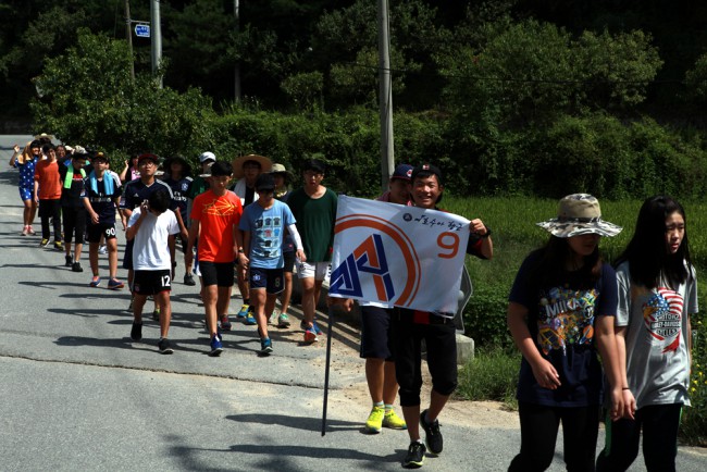 양쪽으로 드넓은 농경지가 펼쳐진 농로도 지나고, 선생님들이 만들어 놓으신 징검다리로 개울도 건너고, 때로는 우로밀착, 좌로밀착 복명복창하며 차도의 갓길도 지나는 등 다양한 길을 걸어 보았는데 힘들기도 했지만 재미있었습니다.