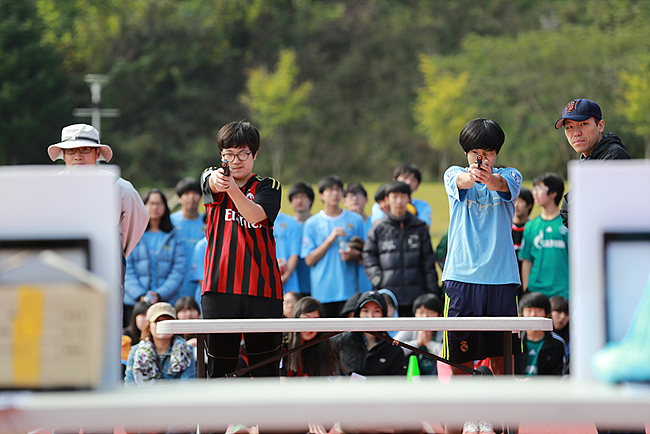 2013년 10월 18일 제 1회 사사올림픽 준비 된 선수부터 사격!... ... 탕! 선생님들이 점수판을 확인 하십니다.
