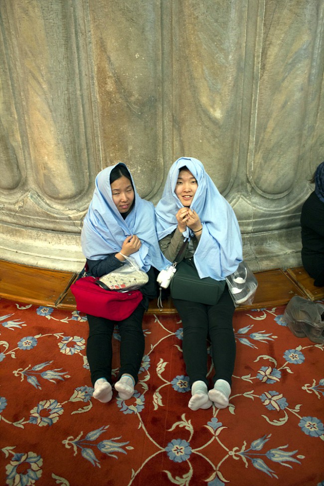하지만 아야 소피아 보다 우선 술탄 아흐멧. 블루 모스크에 들어갔습니다. 현재도 예배를 계속 드리는 모스크라, 이스람 교도들이 많았습니다. 아야소피아보다 더 아름답고 웅장하게 지으라고 해서 지었다는 블루 모스크. 여기는 그야말로 정말 화려하고 정말 웅장하네요. 아야 소피아보다 더 아름다운 것 같습니다. 오스만 제국의 위엄이, 이슬람 세계의 능력이 드러내는 거야.
