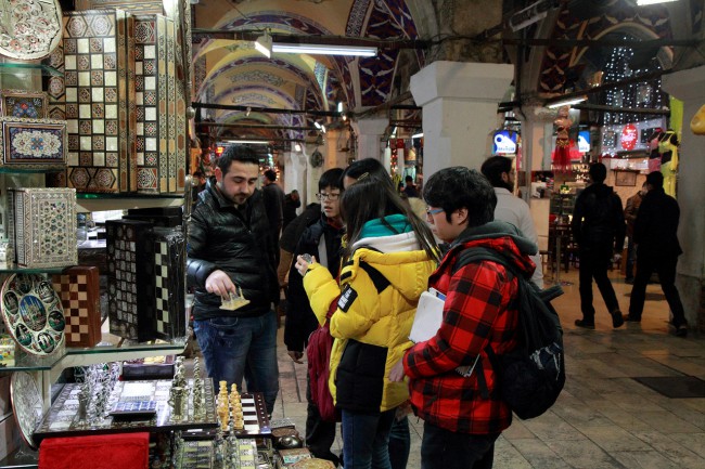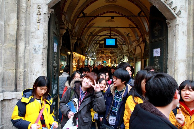 저희가 첫번째로 간 곳은 그랜드 바자르입니다. 그랜드 바자르는 터키어로 ‘카파르 차르시’로 ‘ 지붕이 있는 시장’이란 뜻입니다. 그랜드 바자르는 예전 대부분의 시장과 달리 이 시장에는 지붕이 있다고 해서 붙여진 이름이며 메머드 2세가 각지에서 모인 상인과 시민들이 안심하고 물건을 거래 할 수 있도록 만들었으며 각 상점에는 상점 번호가 붙어져 있습니다.