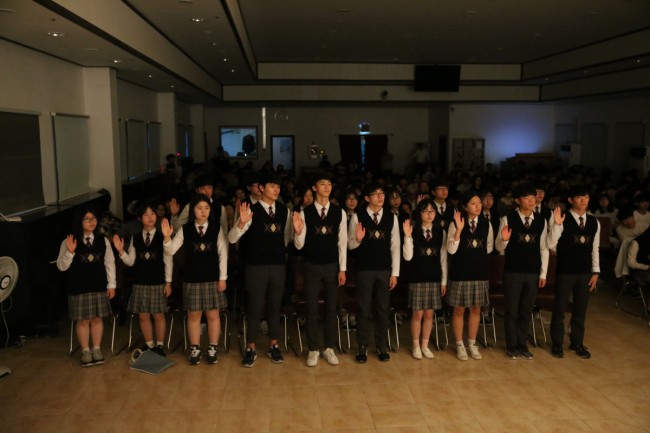 성인식이란 고등학생인 지금 자신의 삶을 돌아보며 다시 하나님 앞에서 결단하는 중요한 예식입니다.