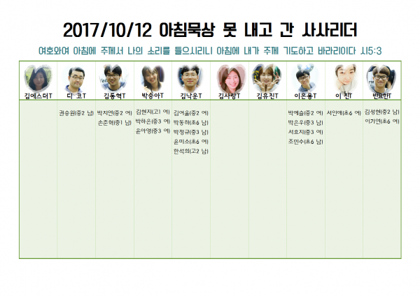10/12 아침말묵 안 보내고 간 사사리더 페이지 정보 작성자 GOD (121.♡.151.27) 작성일17-10-12 15:41 조회7,136회 댓글1건 관련링크 이전글 다음글 목록 본문 댓글목록 김낙운님의 댓글 김낙운 아이피 121.♡.151.27 작성일 17-10-12 16:21 박동하 말씀묵상 하였습니다. 박동하 말씀묵상 하였습니다. 이전글 다음글 목록