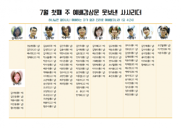 7월 첫째 주 예배감상문 안 보낸 사사리더 페이지 정보 작성자 GOD (112.♡.33.138) 작성일17-07-04 19:44 조회3,340회 댓글0건 관련링크 이전글 다음글 목록 본문 댓글목록 등록된 댓글이 없습니다. 이전글 다음글 목록