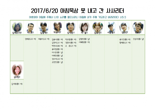 6/19 아침말묵 안 보내고 간 사사리더 페이지 정보 작성자 GOD (112.♡.33.138) 작성일17-06-20 16:10 조회6,866회 댓글1건 관련링크 이전글 다음글 목록 본문 댓글목록 GOD님의 댓글 GOD 아이피 112.♡.33.138 작성일 17-06-20 19:19 이예찬(중3 남) 아침말묵 일찍 안올라와서 못했습니다~ 이예찬(중3 남) 아침말묵 일찍 안올라와서 못했습니다~ 이전글 다음글 목록