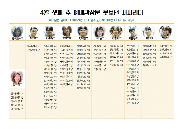 4월 셋째 주 예배감상문 안 보낸 사사리더 페이지 정보 작성자 GOD (112.♡.33.138) 작성일17-04-19 14:24 조회3,533회 댓글0건 관련링크 이전글 다음글 목록 본문 . 댓글목록 등록된 댓글이 없습니다. 이전글 다음글 목록