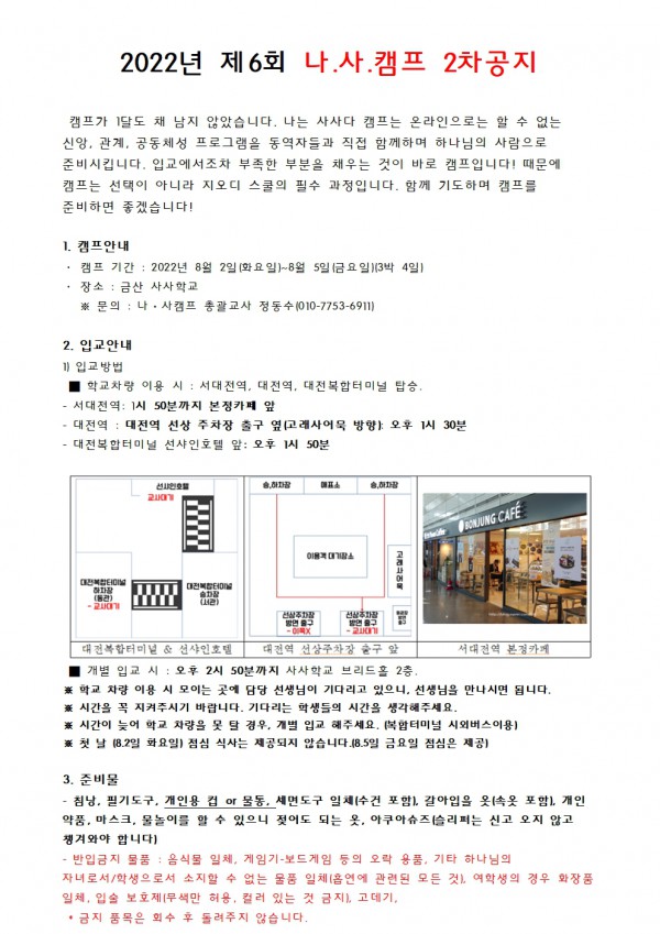[필독] 2022년 제 6회 나.사.캠프 2차 공지