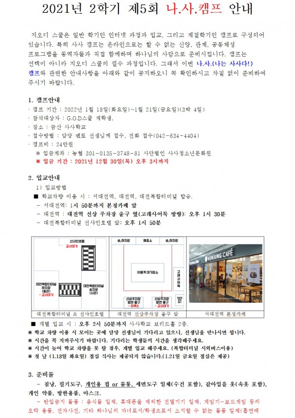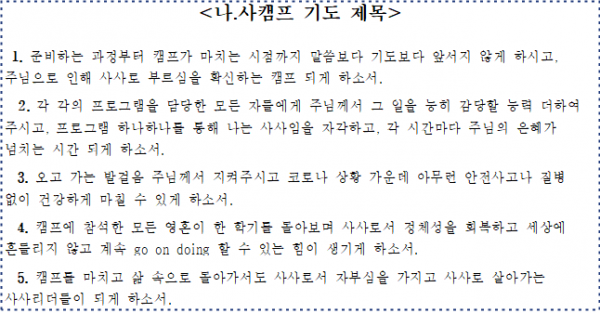 [필독] 제5회 나.사.캠프 공지사항 안내!