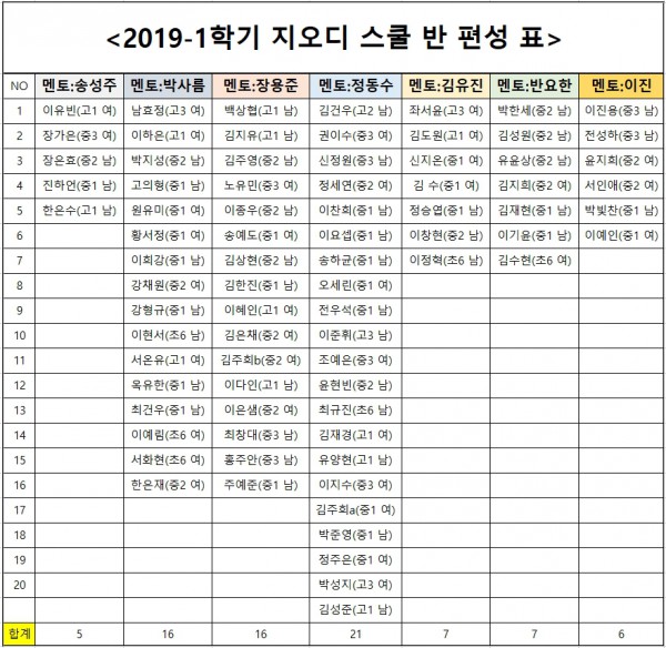 2019년 1학기 지오디스쿨 반편성 페이지 정보 작성자 GOD (121.♡.151.27) 작성일19-02-28 17:21 조회3,480회 댓글0건 관련링크 이전글 다음글 목록 본문 댓글목록 등록된 댓글이 없습니다. 이전글 다음글 목록