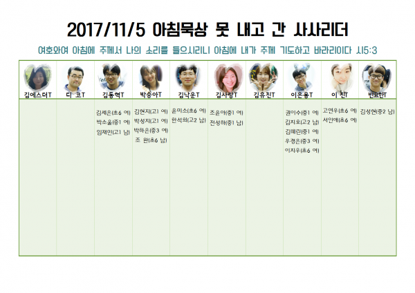 12/5 아침말묵 안 보내고 간 사사리더 페이지 정보 작성자 GOD (121.♡.151.27) 작성일17-12-06 15:43 조회6,812회 댓글1건 관련링크 이전글 다음글 목록 본문 댓글목록 이진님의 댓글 이진 아이피 121.♡.151.27 작성일 17-12-07 15:18 고연우 아침 말씀묵상 했습니다. 고연우 아침 말씀묵상 했습니다. 이전글 다음글 목록