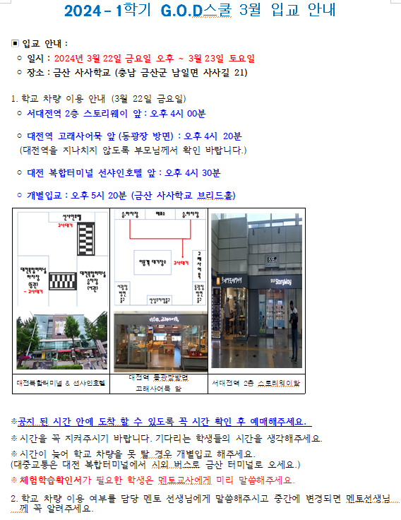 G.O.D 스쿨 1차(3월)입교 공지 페이지 정보 작성자 관리자 (119.♡.39.2) 작성일24-03-05 16:00 조회988회 댓글0건 관련링크 이전글 다음글 목록 본문 댓글목록 등록된 댓글이 없습니다. 이전글 다음글 목록